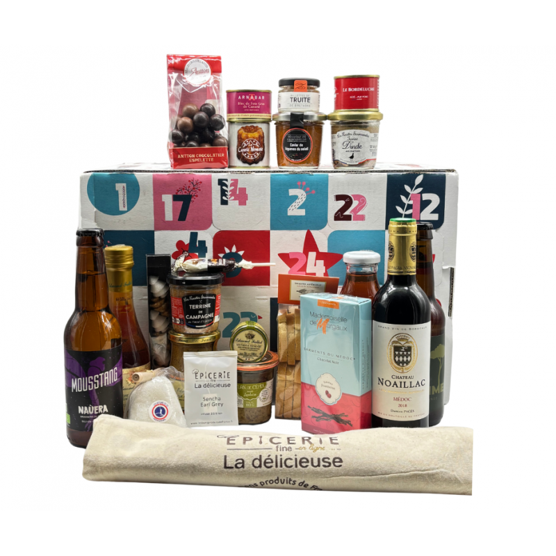 Un calendrier de Noël gourmand composé de produits artisanaux sucrés et salés, soigneusement sélectionnés auprès de producteurs français. Idéal pour découvrir chaque jour une nouvelle saveur et offrir un cadeau gourmet pour les fêtes.
