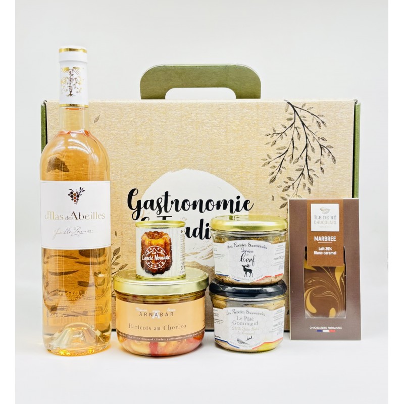 Le tout accompagné d’une bouteille de Mas des Abeilles rosé, présenté dans une valise Gastronomie et Tradition idéale pour offrir ou déguster.