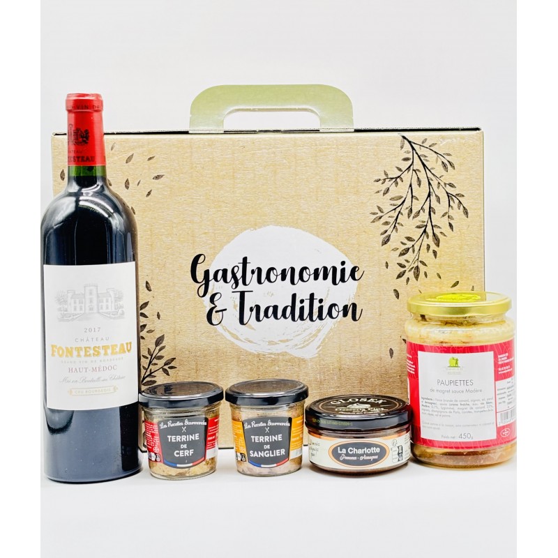 Il réunit un Château Fontesteau, vin d’exception, accompagné de spécialités du terroir telles que la terrine de sanglier et la terrine de cerf, pour des saveurs puissantes et forestières.