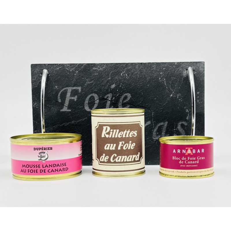 Présenté sur un véritable plateau en ardoise marqué Foie Gras, ce coffret offre une expérience gustative authentique qui allie douceur, caractère et savoir-faire artisanal. Parfait pour offrir ou se faire plaisir.