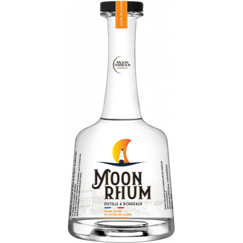 Rhum blanc français Moon Harbour, léger et aromatique, élaboré à partir de canne à sucre de qualité. Idéal pour cocktails ou dégustation pure à 40 % vol.