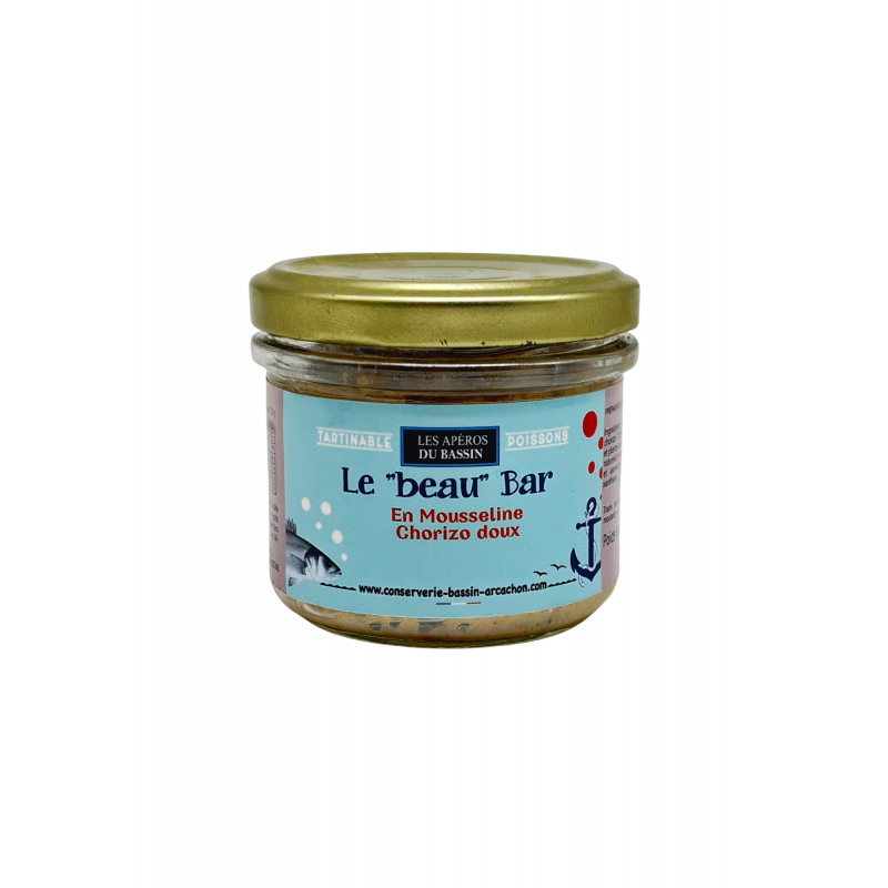 Le Beau Bar 100g, mousseline de bar au chorizo doux, à tartiner frais sur des toasts.