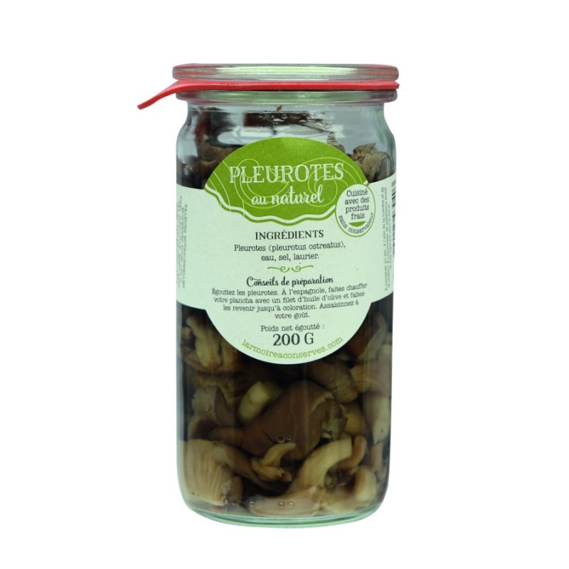 Pleurotes au naturel en conserve, fraîches et préparées pour préserver toute leur saveur délicate.