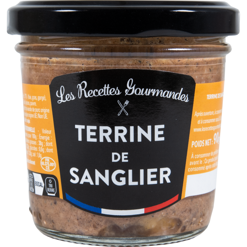 Terrine de sanglier, recette traditionnelle du Sud-Ouest en verrine de 90 g, au bon goût de la campagne.