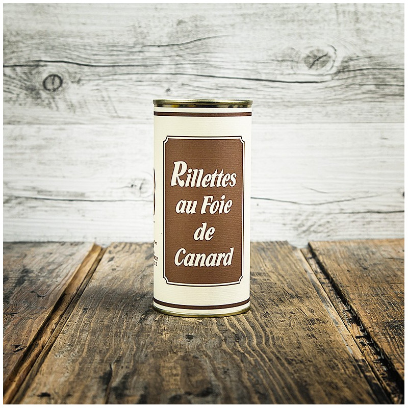 Ces rillettes de canard au foie gras sont préparées à la ferme Moulié selon une méthode artisanale traditionnelle.